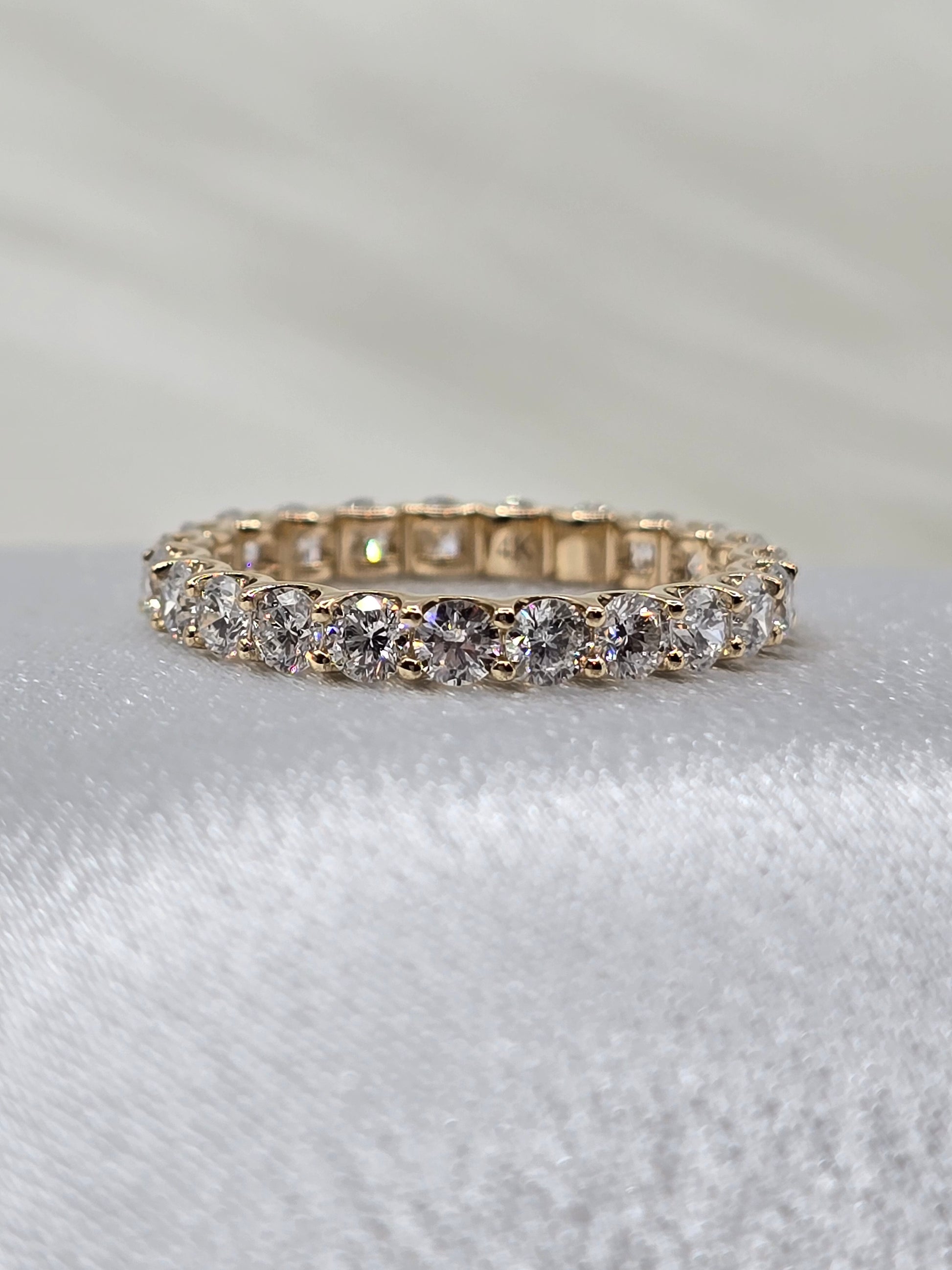 Celebrate your special moments with this stunning 1.50 CTW Lab Diamond Eternity Ring crafted in warm 14K yellow gold. Its continuous circle of sparkling lab-grown diamonds symbolizes everlasting love and commitment, making it a perfect wedding or anniversary gift. Designed to shine beautifully on its own or paired with other rings, this elegant piece offers timeless charm and ethical brilliance.