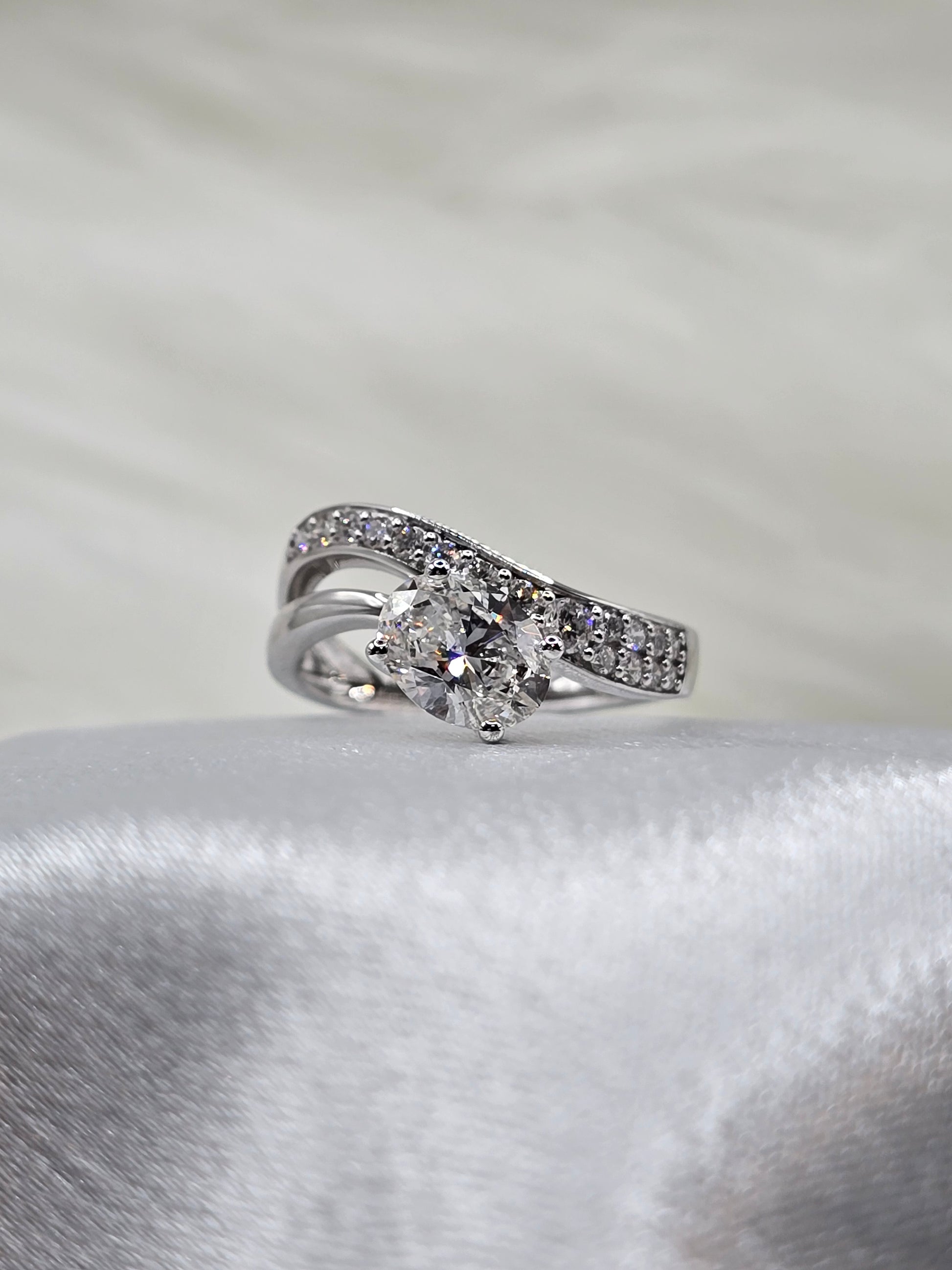Discover timeless elegance with this 1.50 CTW lab-grown diamond ring, showcasing a dazzling 1-carat oval center stone set in radiant 14K white gold. With F color and VS clarity, this non-certified diamond offers exceptional brilliance and ethical beauty. Perfect for those who value both luxury and sustainability, this ring is designed to captivate and celebrate your unique style.