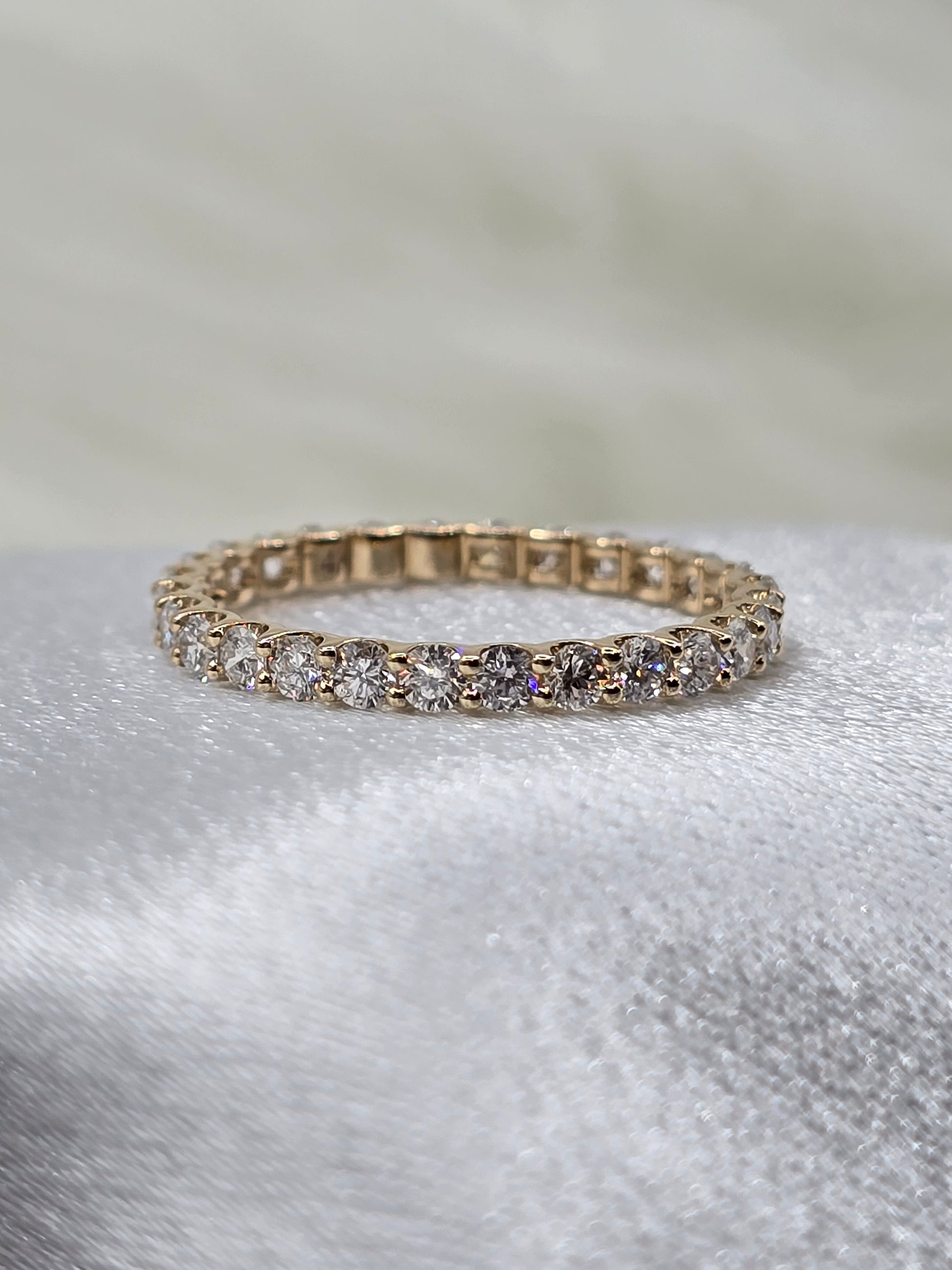 Celebrate your love with this elegant 1 CTW Lab Diamond Eternity Ring in 14K yellow gold. Featuring a continuous band of sparkling lab-grown diamonds, it symbolizes endless commitment and beauty. Perfect for weddings or anniversaries, this ethically crafted ring offers incredible sparkle and meaningful style. These are perfect for stacking!