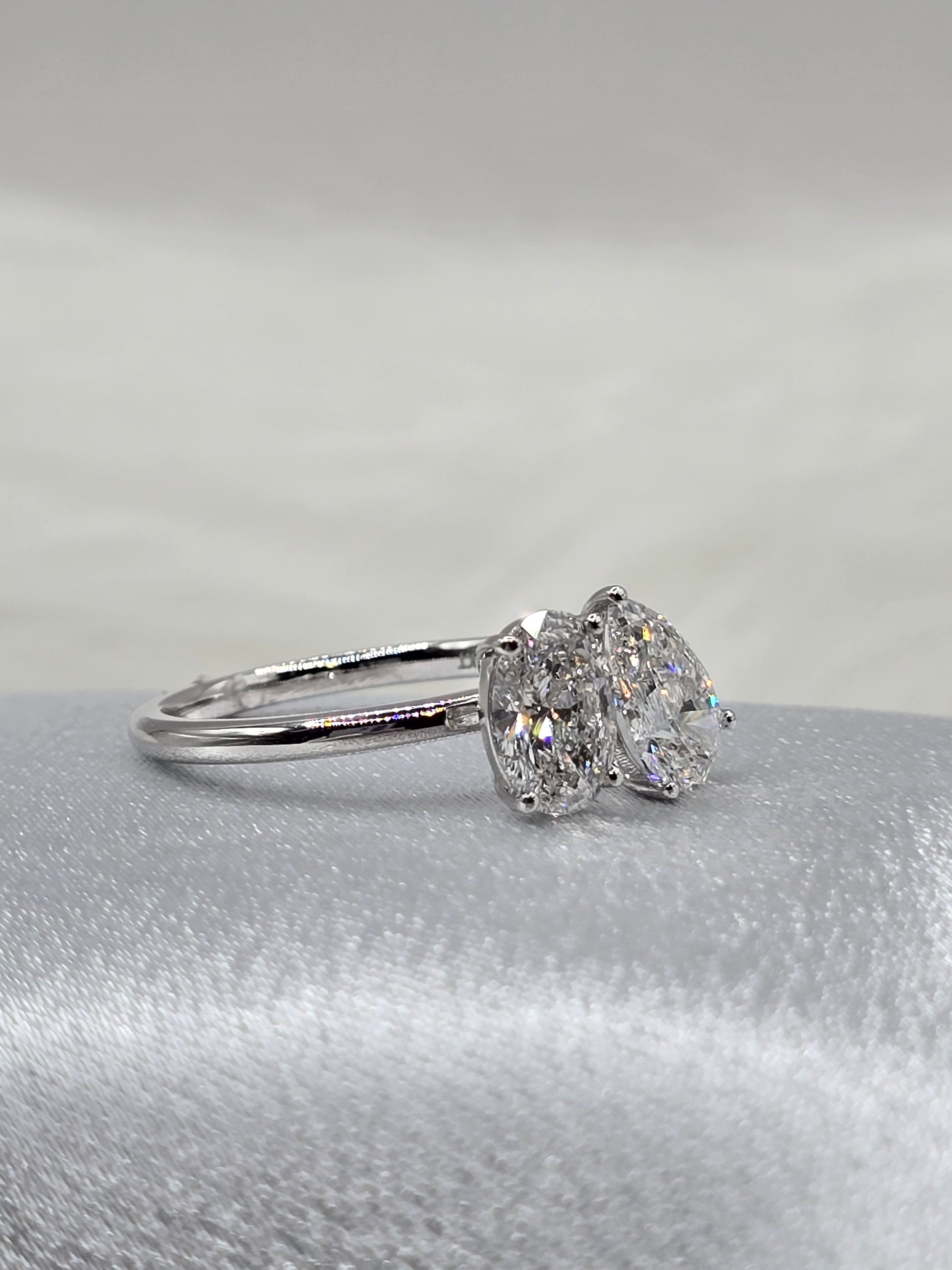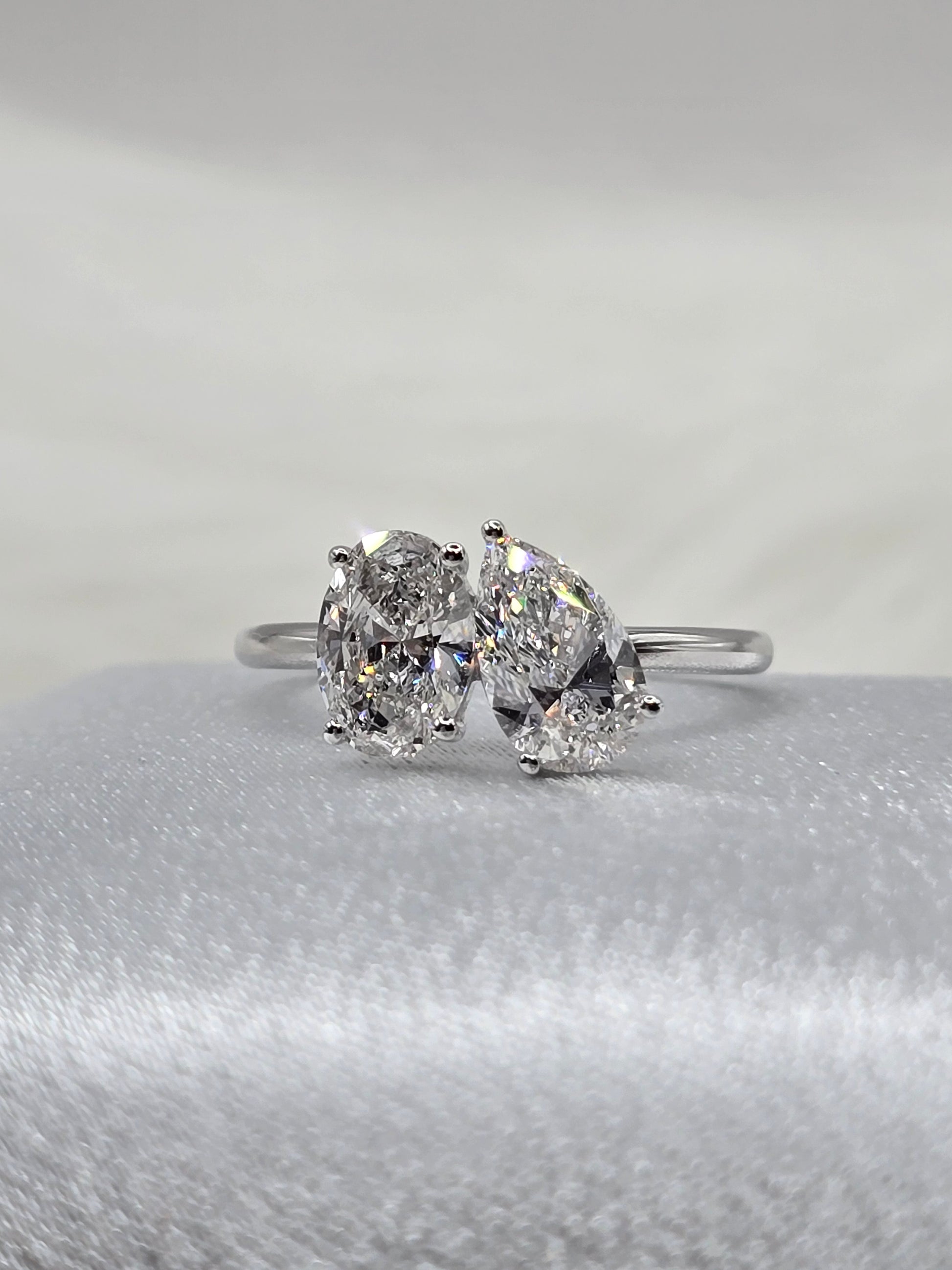 2.00 CTW Toi Et Moi Lab Diamond Ring - 1 Carat Pear/Oval Each - 14K White Gold - Non-Certified