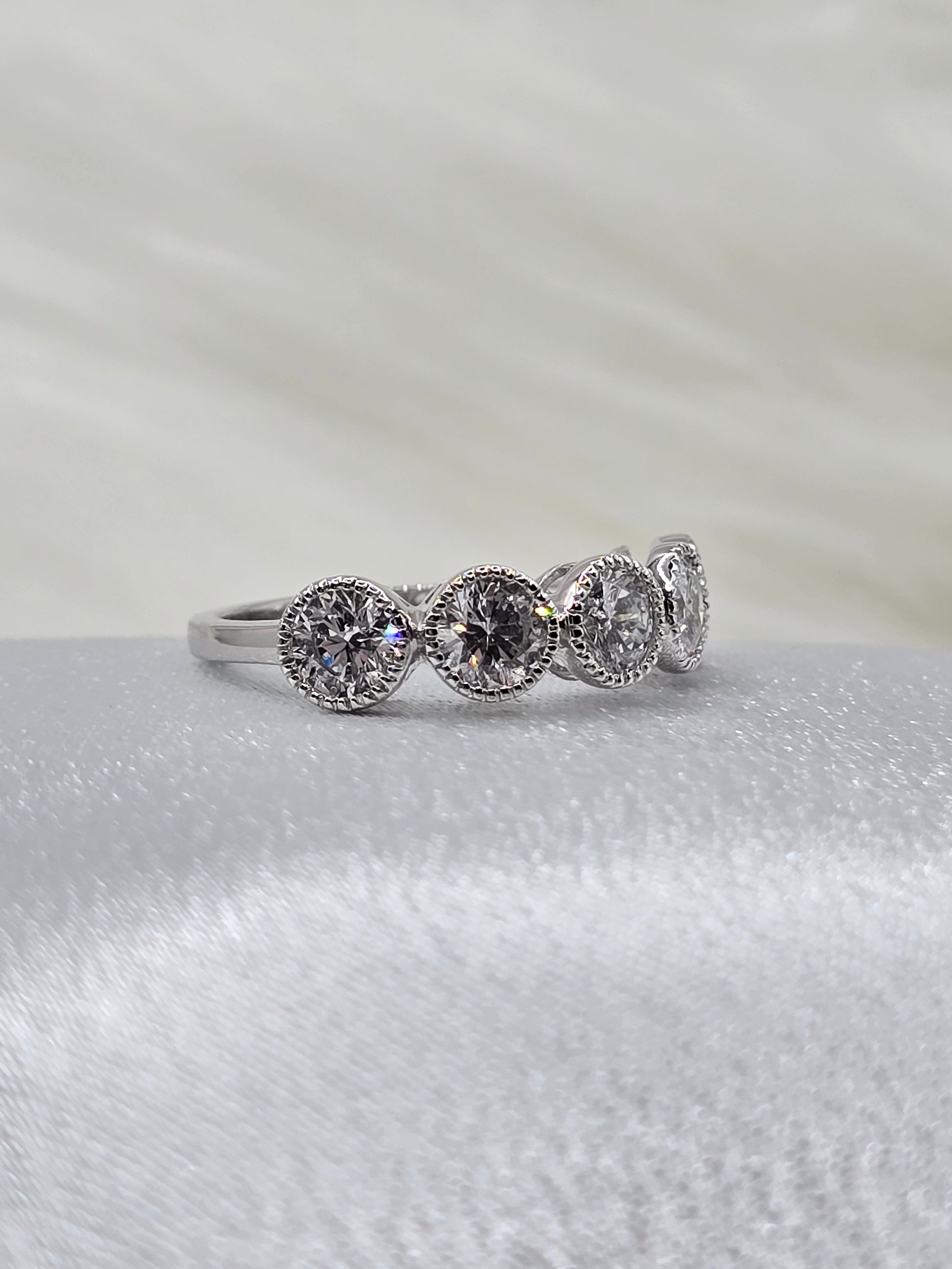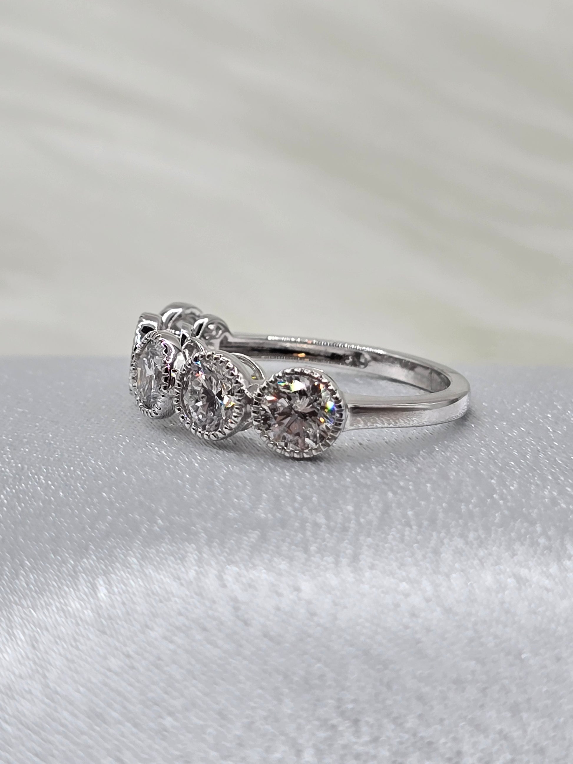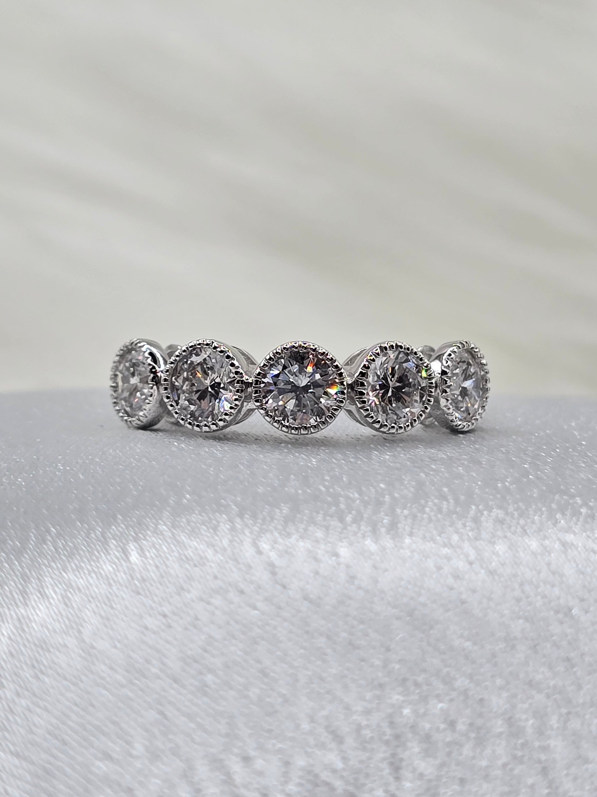 Celebrate your special milestone with this stunning 2 carat bezel set lab diamond ring, crafted in elegant 14K white gold. The bezel setting offers a sleek, secure frame for the diamond, while delicate milgrain detailing adds a timeless touch of vintage charm. Perfect for an anniversary, this ring combines modern craftsmanship with classic beauty to symbolize your lasting love.