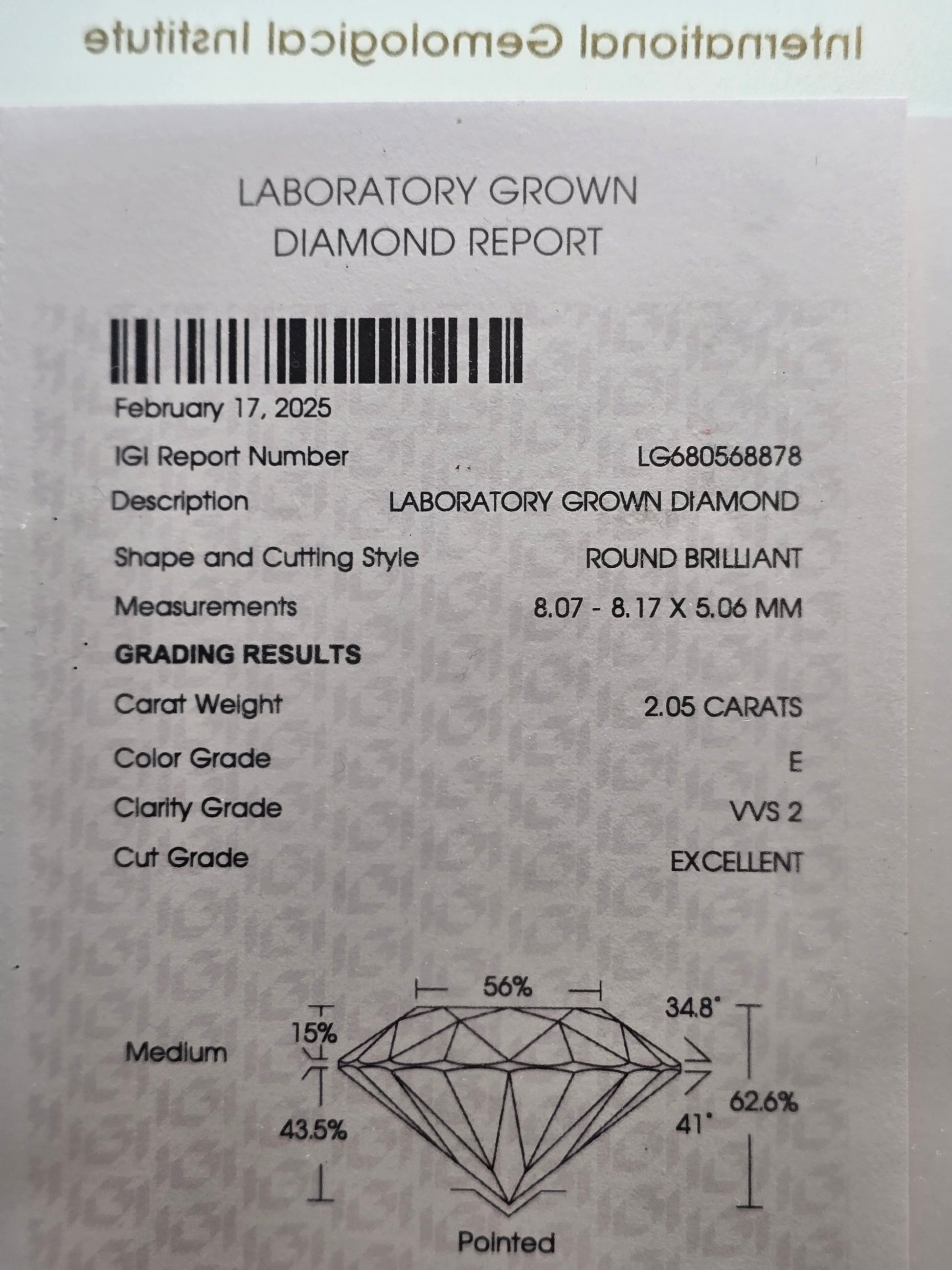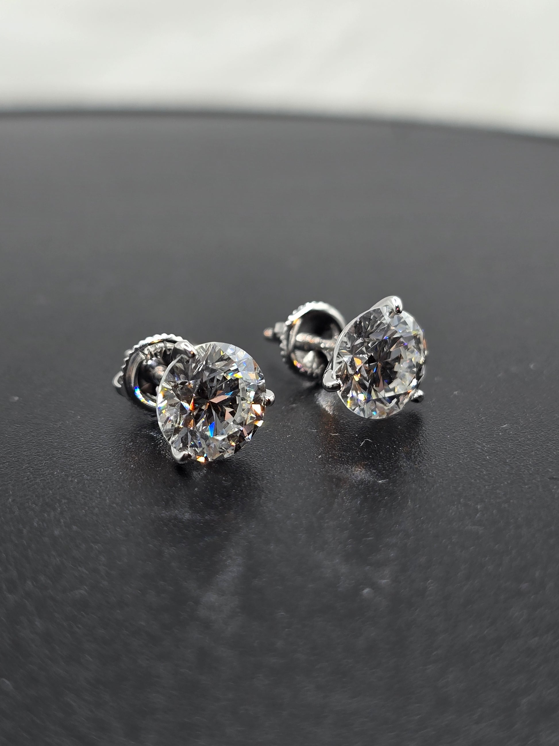Gorgeous pair of 4 CTW lab grown diamond stud earrings set in beautiful 14K white gold (screw backs). Both diamonds are IGI certified E/VVS2. These are a steal at $1398 and a great gift idea.