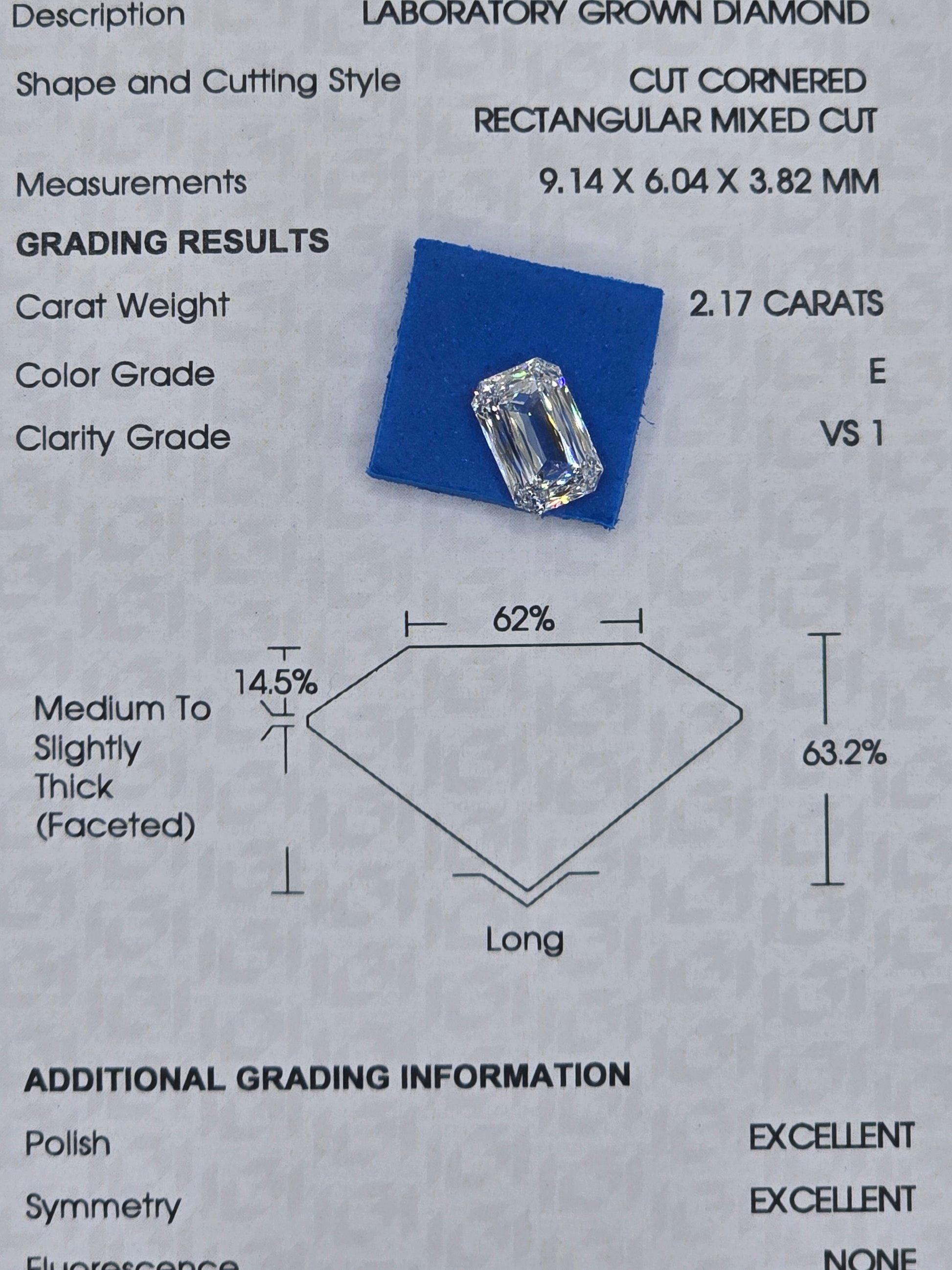 Loose 2.17 Ct E/VS1 Crisscut Emerald Cut Lab Grown Diamond - IGI Certified